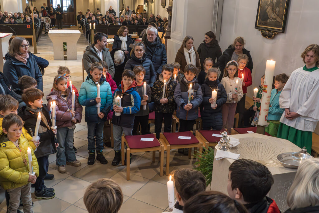 Bei der Familienmesse am 22. März 2026 standen die Kinder, die seit Ostern 2025 das Sakrament der Taufe empfangen haben, im Mittelpunkt. Pfarrer Nicolaus betonte in seiner Predigt, wie wir alle, ob Groß oder Klein, nach dem Vorbild Jesu jemanden trösten und aus dem Dunkel herausholen können. Auch die Kommunionkinder und die neuen Ministrant:innen sorgten in der Messe für fröhliches Beten, Singen und Feiern!