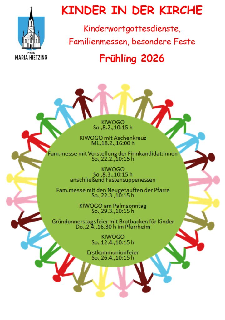 Kontaktpersonen in der Pfarre: Irmi Güttner, Peter Jünnemann, Bernhard Kenner, Iri und Armin Pöder, Matthias und Uta Zessner