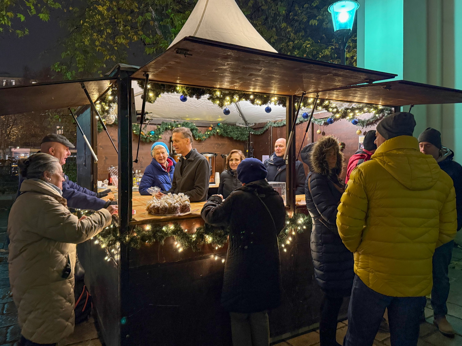 „Jesus war Jude. Er kam aus einer jüdischen Familie und lebte in einer jüdischen Gesellschaft. Das alleine und vieles, das wir heute gehört haben zeigt, dass Juden und Christen untrennbar miteinander verbunden sind. Das sollten wir uns immer vor Augen halten“, sagte Pfarrer Nicolaus Buhlmann am Ende des Abends und lud zu einer Schweigeminute im Gedenken an jene jüdischen Frauen, Männer und Kinder, die noch immer in der Hand ihrer Geiselnehmer sind. Ein berührender Ausklang eines schönen Abends. Und die Glanzlichter strahlten!